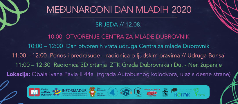Otvorenje Centra za mlade Dubrovnik i obilježavanje Međunarodnog dana mladih uz prigodan program i radionice.