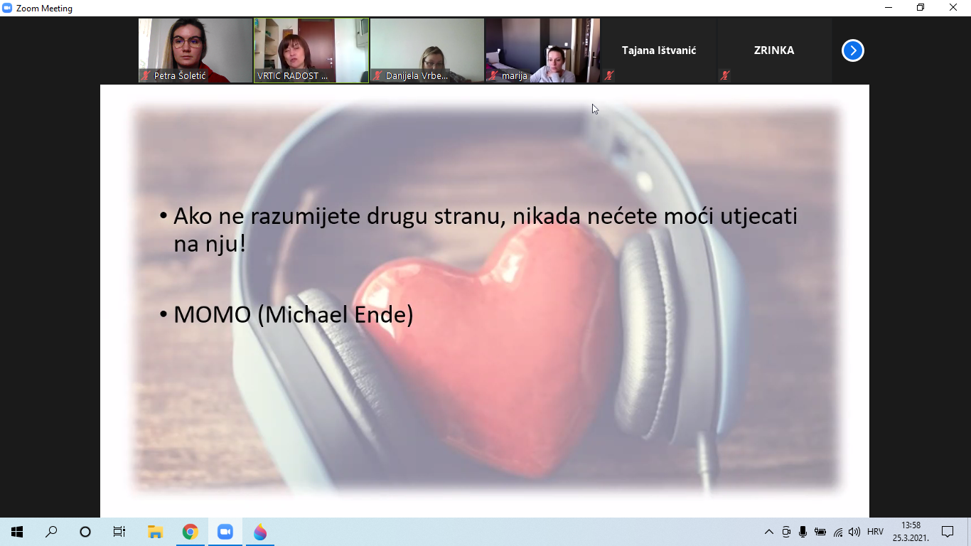 Edukacija je održana on-line putem aplikacije „Zoom“, a financirana je sredstvima Projekta „Unaprjeđenje usluga u sustavu ranog i predškolskog odgoja i obrazovanja dječjeg vrtića općine Župa dubrovačka“ iz Europskog socijalnog fonda.