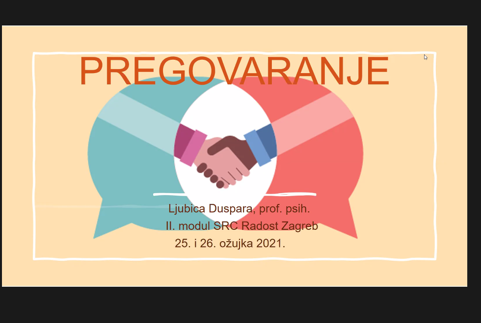 Neke od tema i vježbi koje su se odradile udrugom modulu su sljedeće: individualne konzultacije s roditeljima, kako slušati sugovornika, kako govoriti ja porukama, sukob ili suradnja…