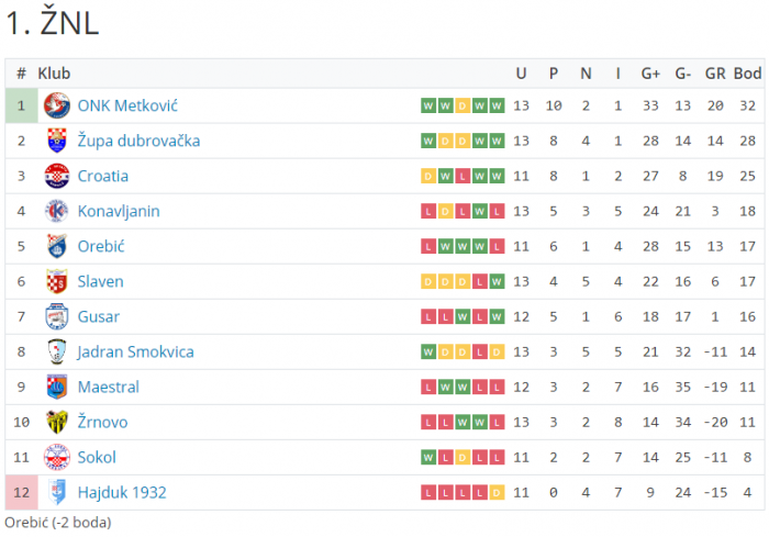 U nedjelju 11. travnja odigrano je 13. kolo 1. ŽNL. Župa dubrovačka gostovala je u Orebiću i izborila pobjedu te zasjela na drugo mjesto prvenstvene tablice, odmah iza vodećeg ONK Metković. Sljedeću nedjelju Župa dubrovačka dočekuje Gusara iz Komina.
