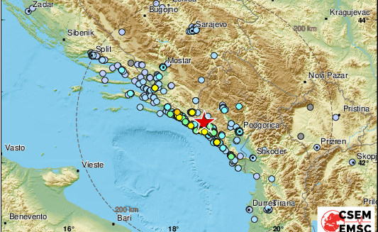 Snažan potres zatresao je Dubrovnik u 1 sat i 18 minuta. Prema EMSC-u, epicentar je u Crnoj Gori jačine 4,5 prema Richteru, 14 kilometara sjeverno od Herceg Novog i 57 km zapadno od Podgorice, na dubini od 9 km.
