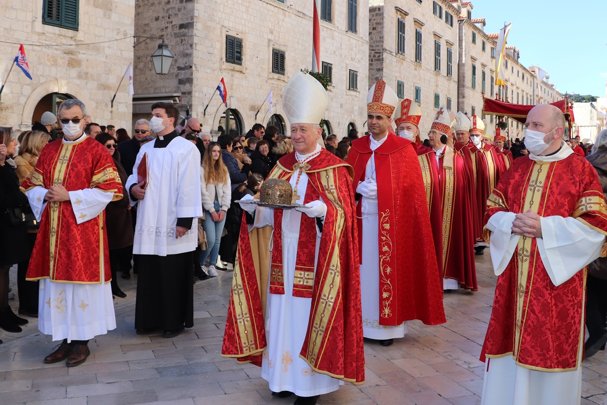 Veličanstvena procesija koju stanovnici dubrovačkog kraja posebno vole, u kojoj rado sudjeluju ili je dođu pogledati, krenula je nakon središnjeg misnog slavlja Feste sv. Vlaha ulicama Dubrovnika. Meditativne tekstove čitala je Ivana Lenert, a Mješoviti katedralni zbor i zbor crkve svetog Križa iz Gruža pod vodstvom prof. Maje Marušić predvodili su pjevanje.
