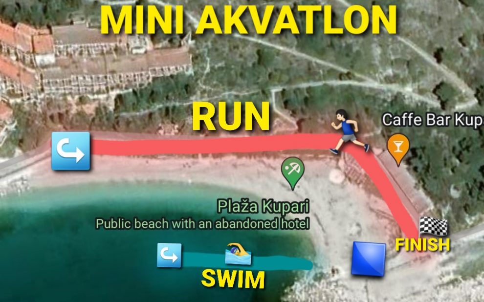 U subotu 16. srpnja održat će se 5. kolo Multisport Lige Dubrovnik u organizaciji Triatlon kluba Dubrovnik. Akvatlon će se održati na istom mjestu kao i svake godine – u Kuparima, a ove godine održat će se i Mini akvatlon za najmlađe. Plivanje je u moru, 50m u jednom pravcu, okret oko bove, i natrag 50m do izlaska iz mora na plažu do tranzicijske zone. Slijedi oblačenje obuće za trčanje, trče se dva kruga po 500m prije ulaska u cilj. Djeca mlađa od 8 ili starija od 12 godina ne mogu sudjelovati.