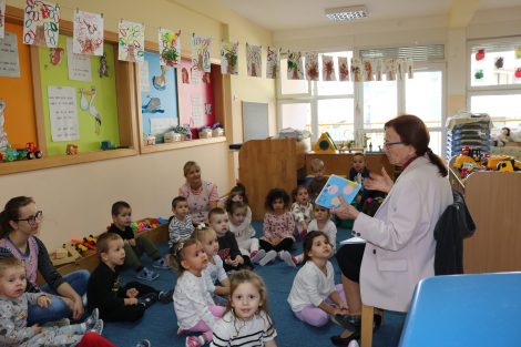 U tijeku obilježavanja mjeseca knjige, Dječji vrtić posjetile su doktorice pedijatrice Zvjezdana Peharda, Mira Lazarević i Marija Radonić, koja je ujedno i inicijatorica nacionalnog programa “Rođeni za čitanje”. Pedijatrice su obišle jasličke skupine uzrasta do 3 godine te im čitale slikovnice prilagođene toj dobi “Moj Medo” i “Bebe su super”.
