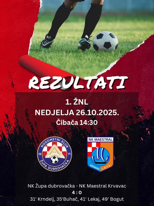 Župa je već u prvom poluvremenu pokazala sigurnu igru i odlučnost. U 31. minuti mrežu protivnika načeo je Krndelj, samo četiri minute kasnije Buhač je povećao vodstvo, a Lekaj je u 41. minuti postigao treći pogodak. U drugom dijelu susreta Bogut je u 49. minuti potvrdio pobjedu i postavio konačan rezultat 4:0.