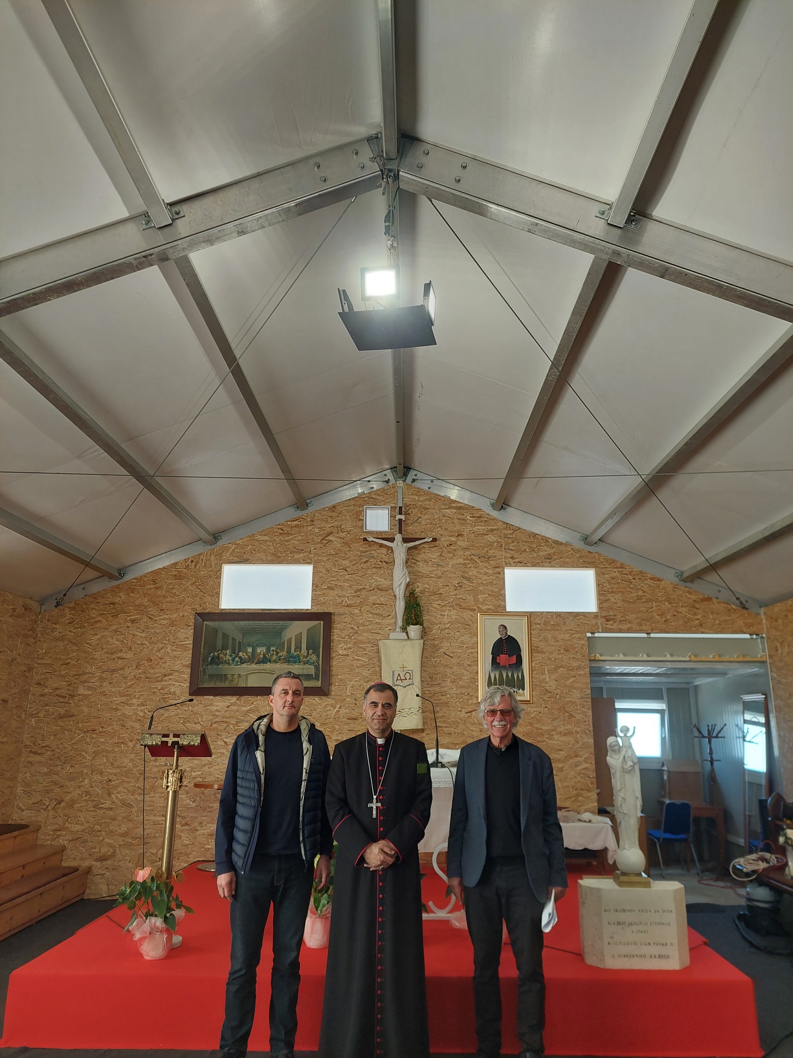 Nakon blagoslova crkve na groblju Dubac, biskup je sa župnikom Babaićem i suradnicima, među kojima je bio i voditelj projekta prof. Jure Marić, obišao teren obuhvata buduće crkve bl. Alojzija Stepinca u Kuparima i posjetio sadašnji privremeni prostor za slavlja misa.