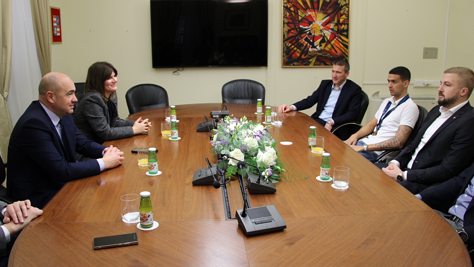 Prijemu u palači Ranjina prisustvovali su i zamjenik župana Joško Cebalo te pročelnica Upravnog odjela za obrazovanje, kulturu i sport Jelena Dadić Račić, a s Markom Kurajom bili su i predsjednik Županijskog nogometnog saveza DNŽ Ivo Jerković, predsjednik MNK Square Ante Vojvodić i tajnik Mato Kalafatović.