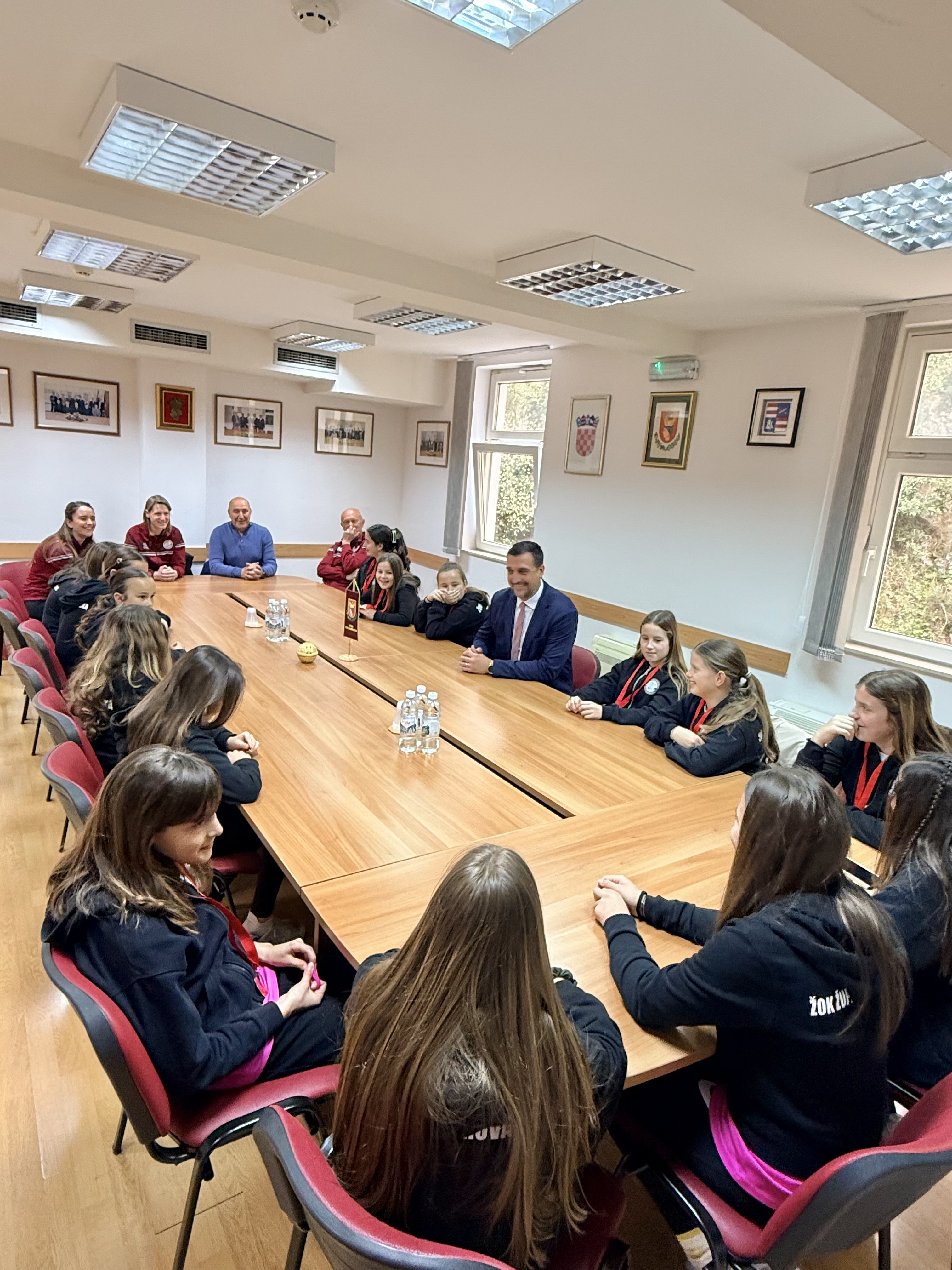 Na prijemu u Općini načelnik je djevojčicama i njihovim trenericama Katarini Nardelli, Đeni Paskojević, Nikoli Makiviću, te predsjedniku kluba Miranu Miloslaviću uputio iskrene čestitke i zahvalio im na izvanrednom uspjehu.